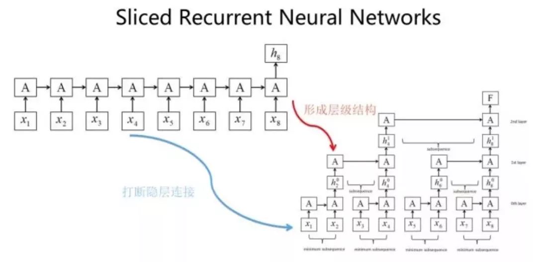 论文Sliced Recurrent Neural Networks提出打断隐层之间的连接,比如每隔2个时间步打断一次,并通过层深来建立远距离特征之间的联系。SRNN速度比GRU模型快5到15倍。