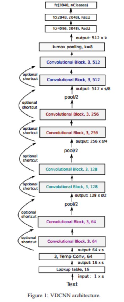 在论文Do Convolutional Networks need to be Deep for Text Classification出现之前,卷积神经网络进行文本分类都是用的很浅层的CNN,基本是一个词嵌入层、一个卷积一个池化然后两个全连接层,文章利用了29个卷积层,提升文本分类的准去率。