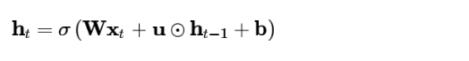IndRNN 引入了 Relu 作为激活函数,并且将层内的神经元独立开来。对 RNN 的式子稍加改进,就变成了 IndRNN: