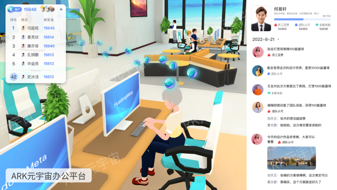 作为一个“轻装上阵”的小型团队,ARK自己则是身体力行了那套更自由、更年轻的游戏化成长绩效管理体系,并全员100%实施4+1元宇宙联结办公制。