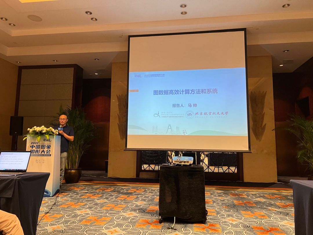 接着,北京航空航天大学马帅教授分享了其课题组关于图数据高效计算方法和系统方面的研究工作。马老师从计算有效性、能耗和学习效率等瓶颈问题出发,介绍了相应的数据科学与计算智能、新型计算技术和系统及认知机理和仿真方面的前沿进展,推动人工智能与计算的融会贯通、共同发展。