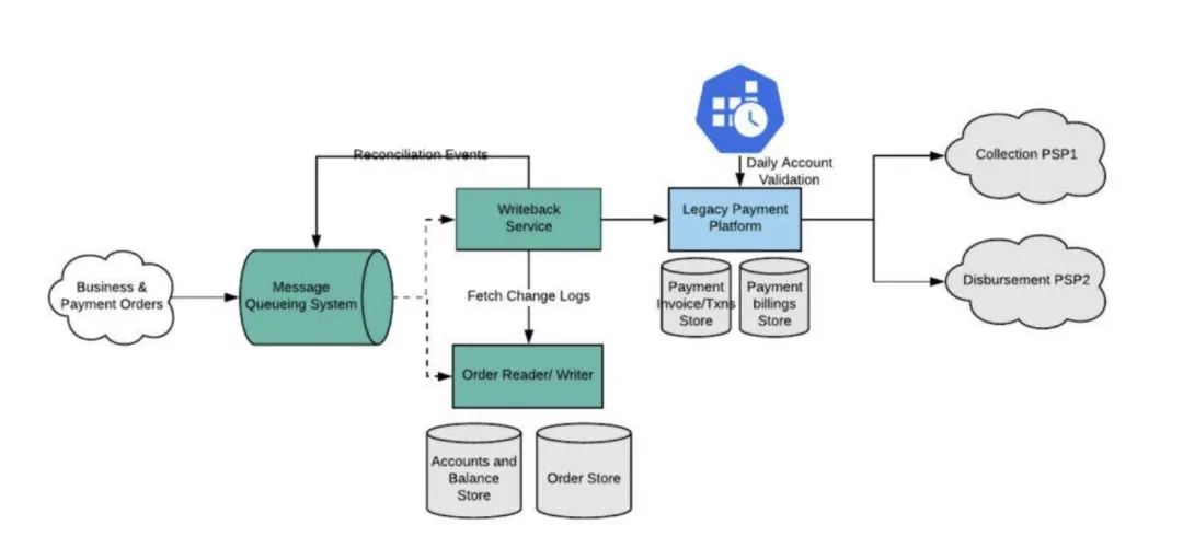 遗留系统有两个内部系统。一个向乘客和 Uber Eats(优步优食)用户收取费用,另一个向餐馆和合作伙伴司机支付费用。这个遗留系统有很多缺点,例如对于端到端的资金流动就没有整体看法。它还拖慢了构建更通用功能的进程,比如 Cash Trips、Uber 需要从其他司机合作伙伴那里收取佣金等等。因此,我们希望构建一个与角色无关的系统,可以从任何用户收付资金。这样就可以让多个业务线能够更快地上网。