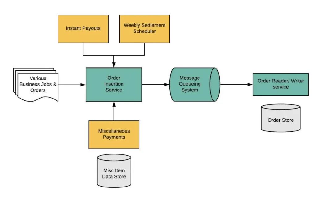 我们的新架构现在使用基于作业 / 订单的系统。每份作业都代表着一次拼车旅行或吃饭 / 送餐。由于调整、奖励、小费等原因,同一份作业可能会有多个订单。每个订单都包含多个订单条目,每个订单条目代表着进出用户账户的金额。它们共同代表了从付款人账户到收款人账户的资金流动。所有条目的总和为零(因为系统并不能创造或销毁货币)。它从一个账户流向另一个账户。货币流动、基于订单的系统创建了类似于现实世界中的复式记账系统。