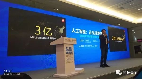 今日,小米董事长兼CEO雷军在乌镇第四届互联网上发表主题演讲《人工智能:让生活更美》。从@小米粉丝后援会 曝光的现场图片来看,雷军演讲的PPT显示,MIUI全球联网激活用户已经超过3亿。