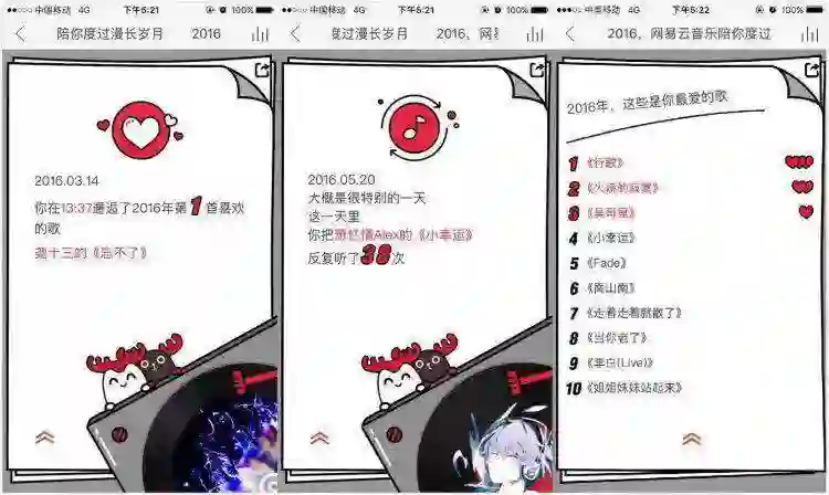 当然根据平台属性不同,可以增加不同的内容,如音乐类一定会总结年度歌单、年度最爱歌手等。