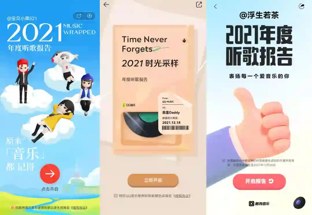有人是凑热闹跟风这场狂欢,有人是单纯想知道这一年的听歌动态、最常听的歌曲与最爱的歌手,也有人是被文案击中了,“爱了这个文案,2021,明亮且温暖”。