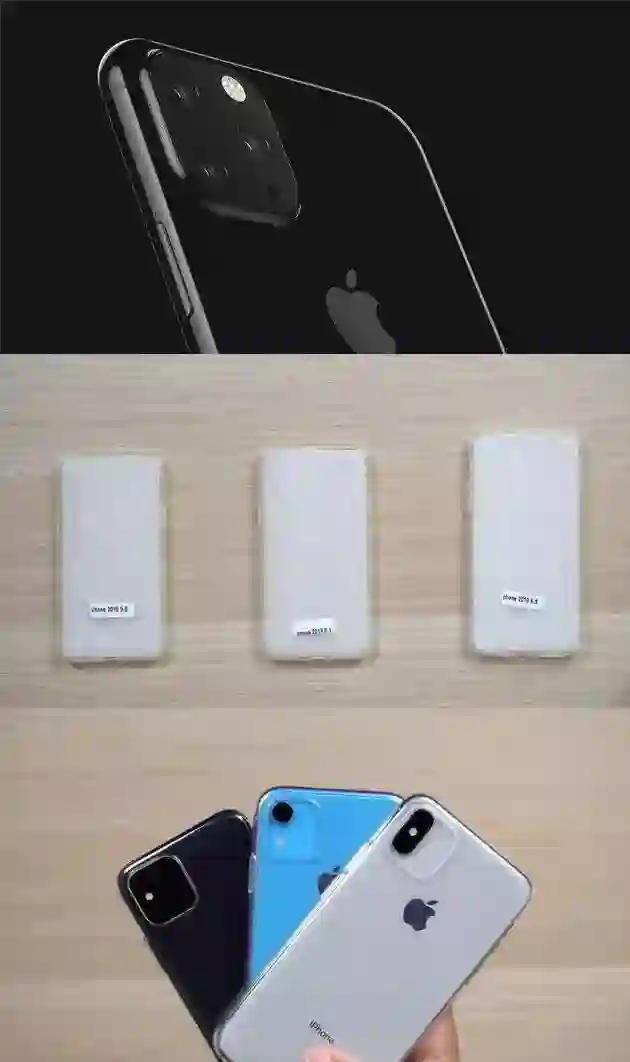 这次外媒就已经拿到了三款新的手机保护壳,三维尺寸和2018年的iPhone产品线一致:分为5.8、6.1、6.5三款,分别对应今年的iPhone Xs、iPhone Xr和iPhone Xs Max。这三款手机壳套现款iPhone上的样子如图,方方正正的、面积扩大了许多的后置摄像头凸起处的开口再一次印证了之前网络流传的图片中三摄像头+闪光灯的浴霸般的后置摄像头布局。
