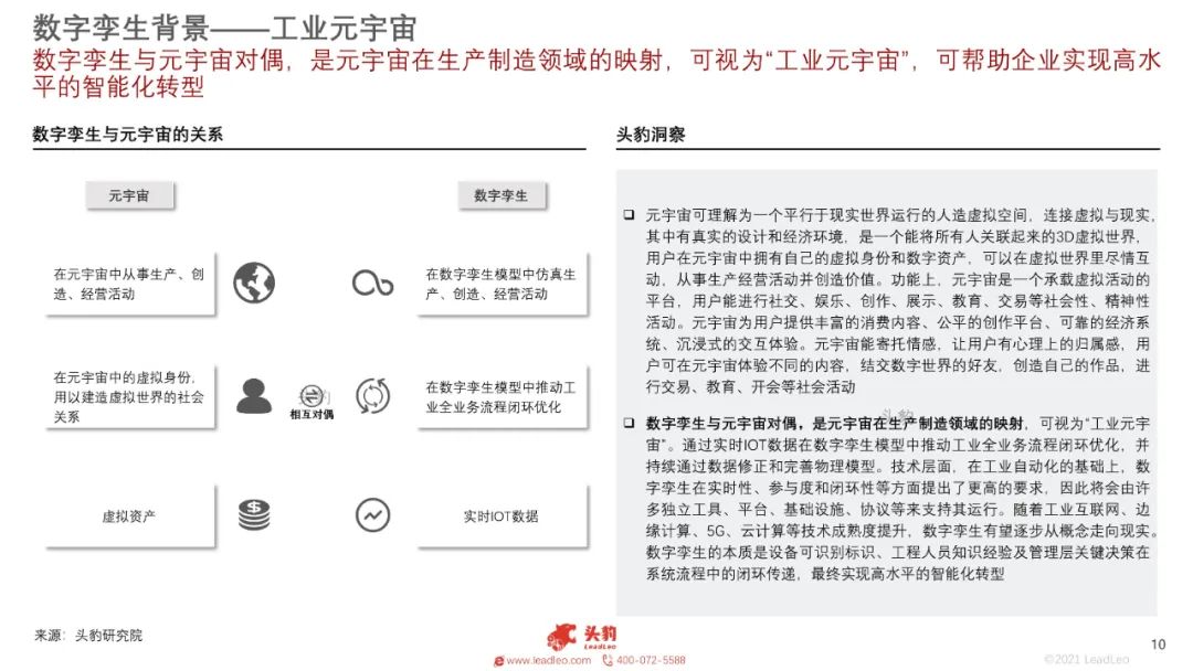 数字孪生与元宇宙对偶,是元宇宙在生产制造领域的映射。