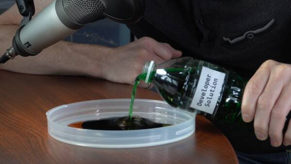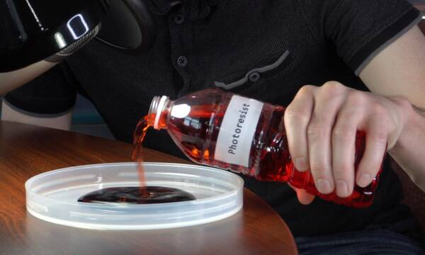 第十四步,加入一些神奇的化学物质来改善(develop)一下光刻胶。