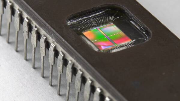 第十八步,在硅芯片上找到焊盘,并把导线连接起来,或者像大多数现代处理器一样使用倒装芯片方法(flip-chip)。