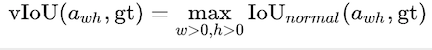 这里面还有个问题,就是对于某个 anchor,应该优化和哪个 ground truth 的 IoU,也就是说应该把这个 anchor 分配给哪个 ground truth。对于以前常规的 anchor,我们可以直接计算它和所有 ground truth 的 IoU,然后将它分配给 IoU 最大的那个 gt。但是很不幸现在的 anchor 的 w 和 h 是不确定的,是一个需要预测的变量。我们将这个 anchor 和某个 gt 的 IoU 表示为