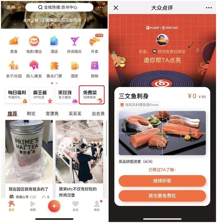 网易云音乐与大众点评联合推出“听歌点亮免费菜”活动