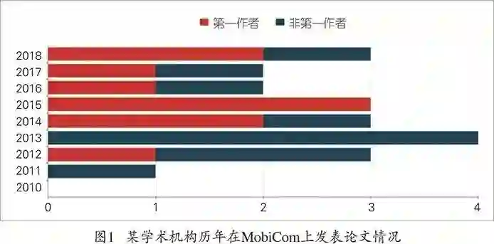在AceMap网页中点击相应的机构名称可显示该机构历年在MobiCom上发表论文的情况,如图1所示。