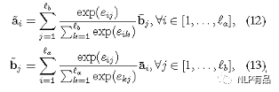 计算方法:1)先计算两个句子word之间的相似度,得到2维的相似度矩阵e,使用点积dot实现;2)然后计算基于句子的局部推断,用上一步的相似度矩阵,用句子T2的bj来生成相似度加权的T1的ai(hat),反过来,用句子T1的word ai来生成相似度加权的T2的 bj(hat),其中,加权是用softmax实现的;3) 把a 和a(hat)计算差和点积,同理,b和b(hat)。然后将多特征做拼接: