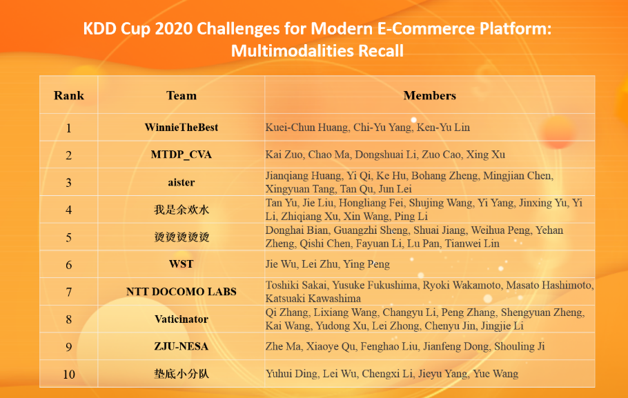 经过上千个国际顶级团队几个月的激烈角逐,KDD CUP 2020 大赛结果终于在其官网上公布,其中,来自中国的团队如国立台湾大学、美团点评、北航、第四范式、东南大学、上海交大、国科大、清华大学包揽全部奖项的冠亚军!