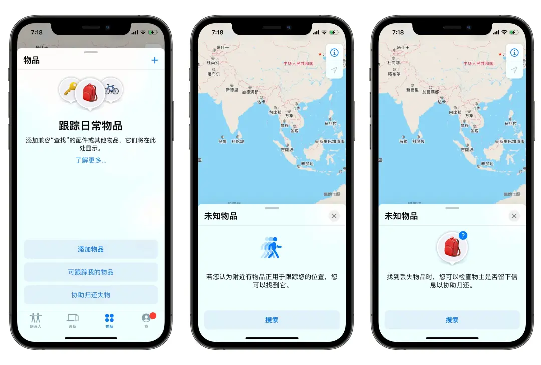 增强查找物品功能。支持用户扫描可能正在跟踪它们的 AirTag 或启用“查找”功能的物品。测试版中,查找应用“物品”一栏会出现“可能跟踪我的物品”选项。用户可点击该选项扫描附近可能用于跟踪其位置的物品。