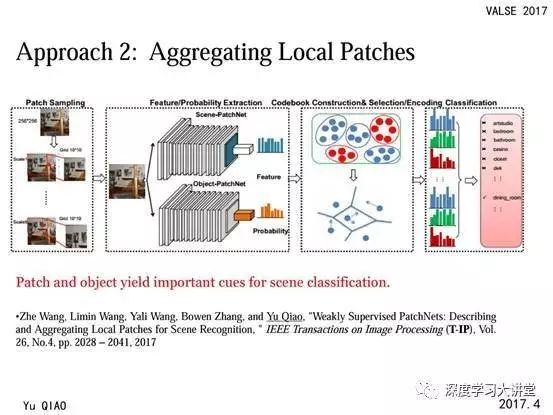 这就启发我们做了第二个工作。我们使用一个卷积网络直接对图像块进行处理,这里一个问题是如何给定图像块的标签。因为场景的类别更加抽象,如果直接赋予图像块相同的标签是不合理的。