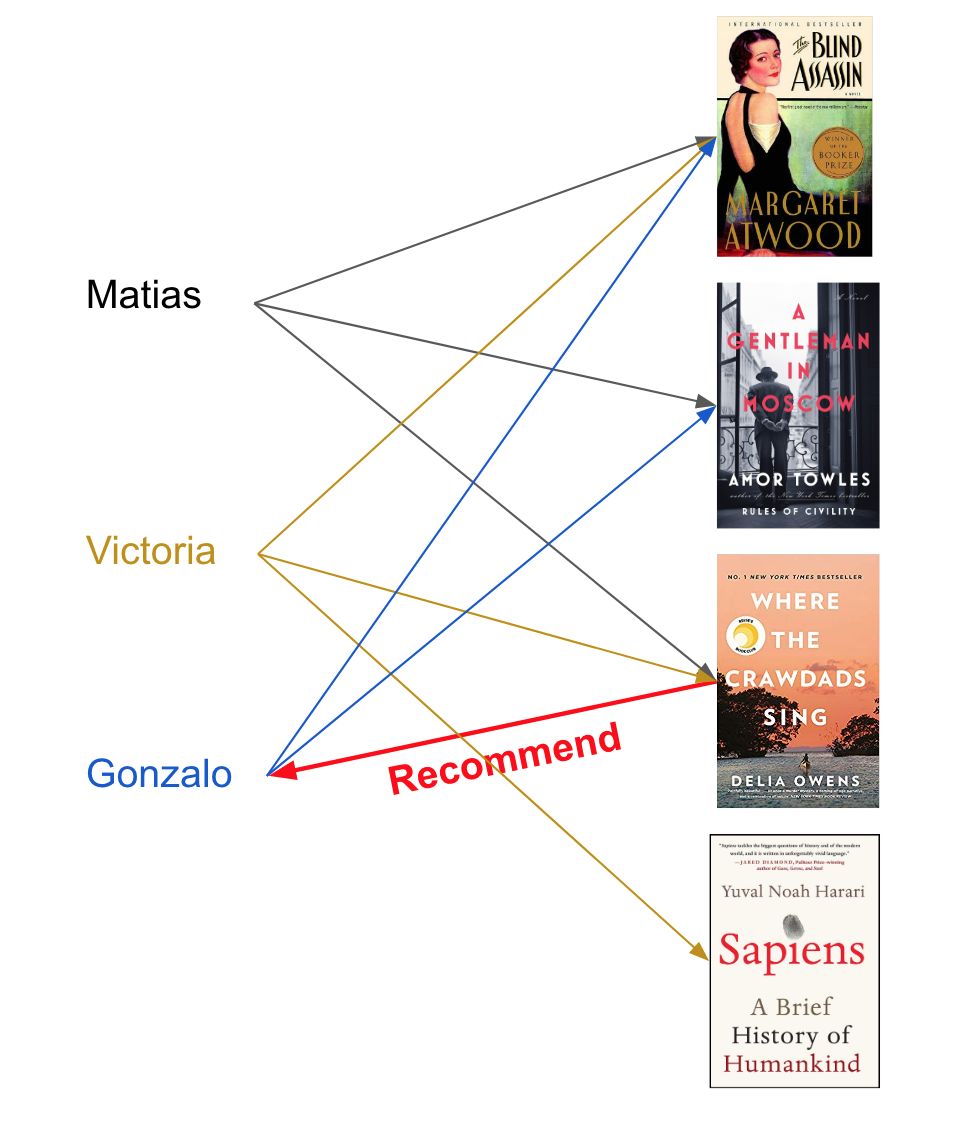 我们借助之前介绍推荐系统的文章来简要回顾一下协同过滤的工作方式: