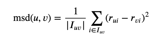 3. 均方差:在于计算用户评分之间的平均平方差。MSE 更侧重于惩罚更大的错误。