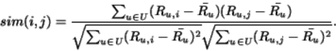 调整后余弦相似度可以缓解这一问题,具体做法是从每对共同评分的配对减去各自用户的平均评分,其定义如下: