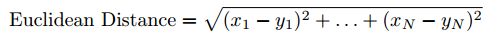1. 欧几里德距离:如果绘制在 n 维空间中,相似的项取决于彼此之间的相近程度。