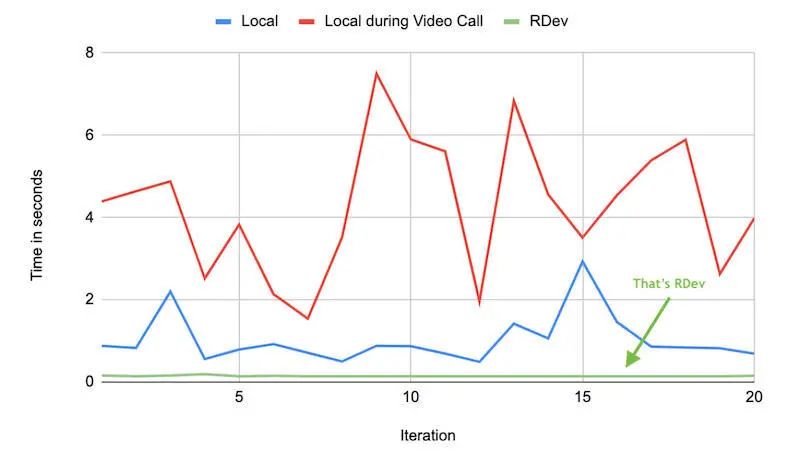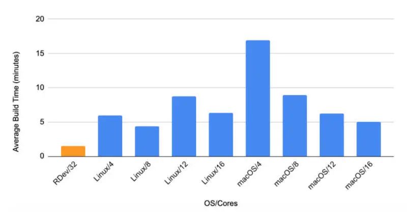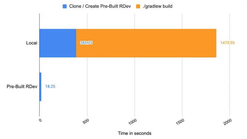 图 3:应用程序的克隆和构建时间的本地与预构建的 RDev 进行比较。