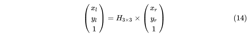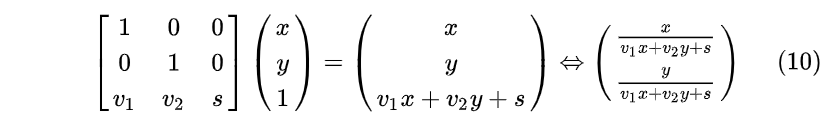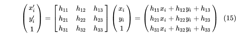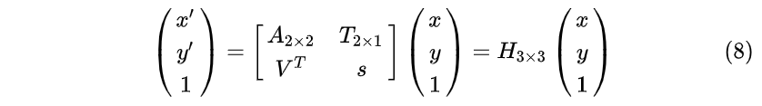 由平面坐标与齐次坐标对应关系 ,上式可以表示为:
