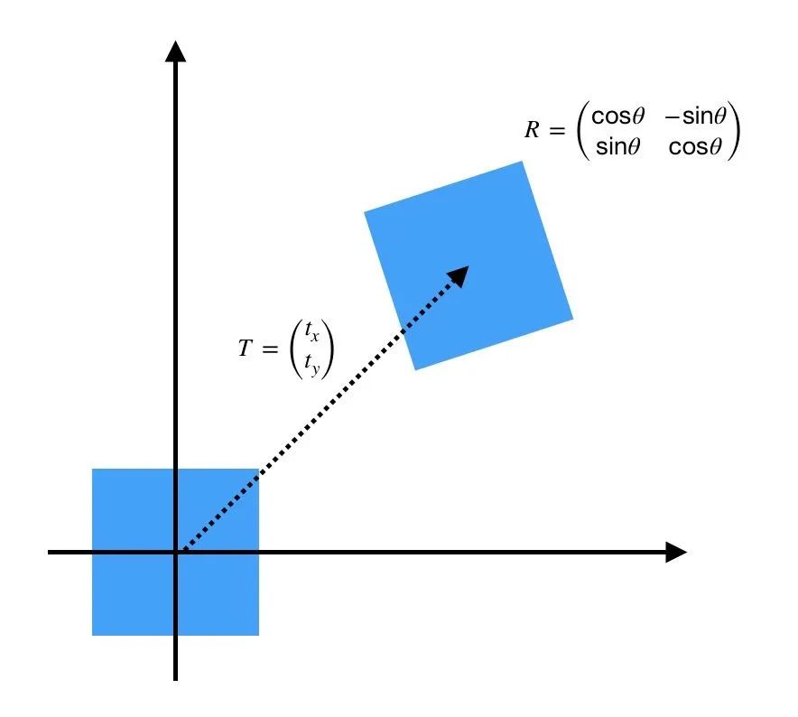 刚体变换:平移+旋转,只改变物体位置,不改变物体形状