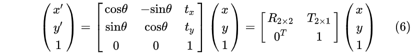 那么就可以把把旋转和平移统一写在一个矩阵乘法公式中,即刚体变换: