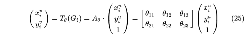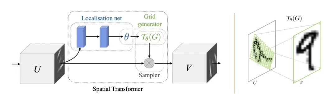 其中 对应STN中的仿射变换参数。STN直接在特征维度进行变换,且可以插入轻松任意两层卷积中。