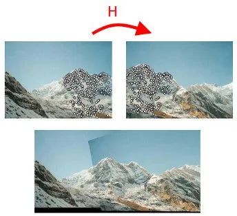H, mask = cv2.findHomography(src_pts, dst_pts, cv2.RANSAC, 5.0)