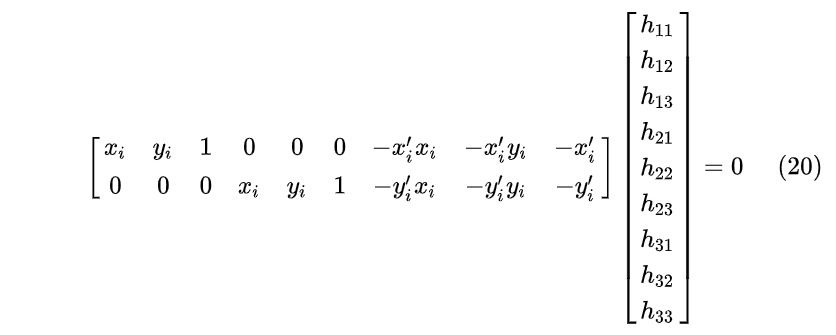 所以单应性矩阵 虽然有9个未知数,但只有8个自由度。