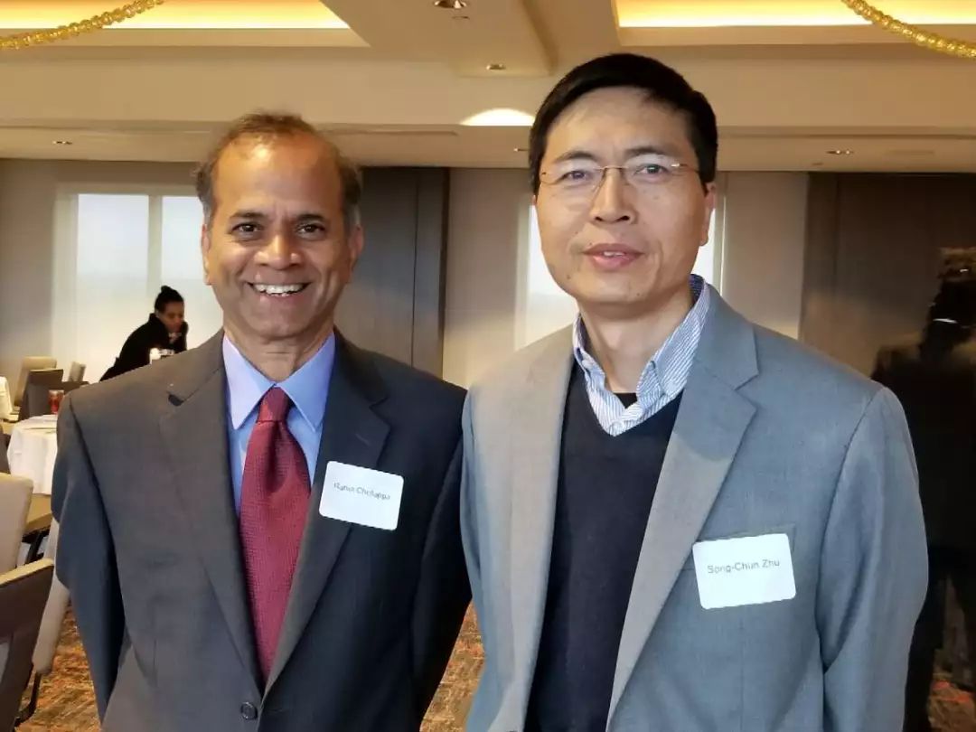 朱松纯在报告中首先回忆1995年第一次遇到Rama的往事,当时还是学生的他在一个研讨会上做了一个关于纹理模型的报告,Rama非常欣赏,并邀请他到马里兰访问。之后的20多年中Rama一直提携和帮助他在学界成长。当年印度裔的学者在计算机视觉领域人数众多、占有领导地位。大陆华人学者只是80年代才开始出国留学,学界能留下来的极少。Rama感念傅京生先生早年对他的影响,对华人学生非常照顾。