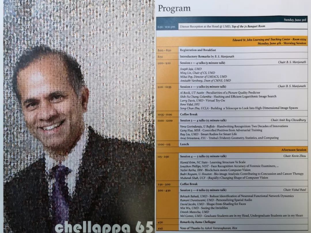 在其指导的第一百位博士生即将毕业之际,马里兰大学电子与计算机工程系系主任,国际计算机视觉专家Professor Rama Chellappa 迎来了他的65岁。由马里兰大学资助,Chellappa教授的学生组织的RC65学术论坛于2018年6月4日在Edward St. John Learning and Teaching Center隆重举行。百余名学生好友家人齐聚一堂,回顾展望Chellappa教授的学术人生,其乐融融!