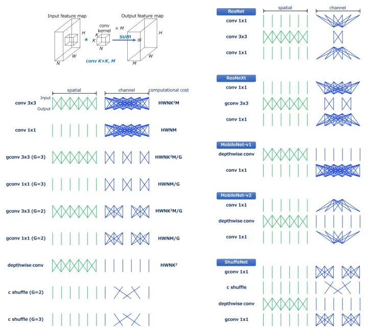 在解释具体的高效CNN模型之前,我们先检查一下高效CNN模型中使用的组成部分的计算量,看看卷积在空间和通道域中是如何进行的。