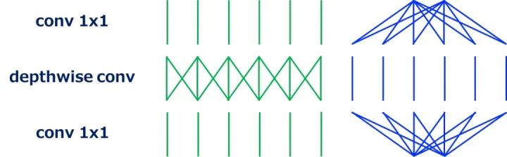 这里重要的一点是,标准卷积的计算量与(1)输出特征图H x W的空间大小,(2)卷积核K的大小,(3)输入输出通道的数量N x M成正比。