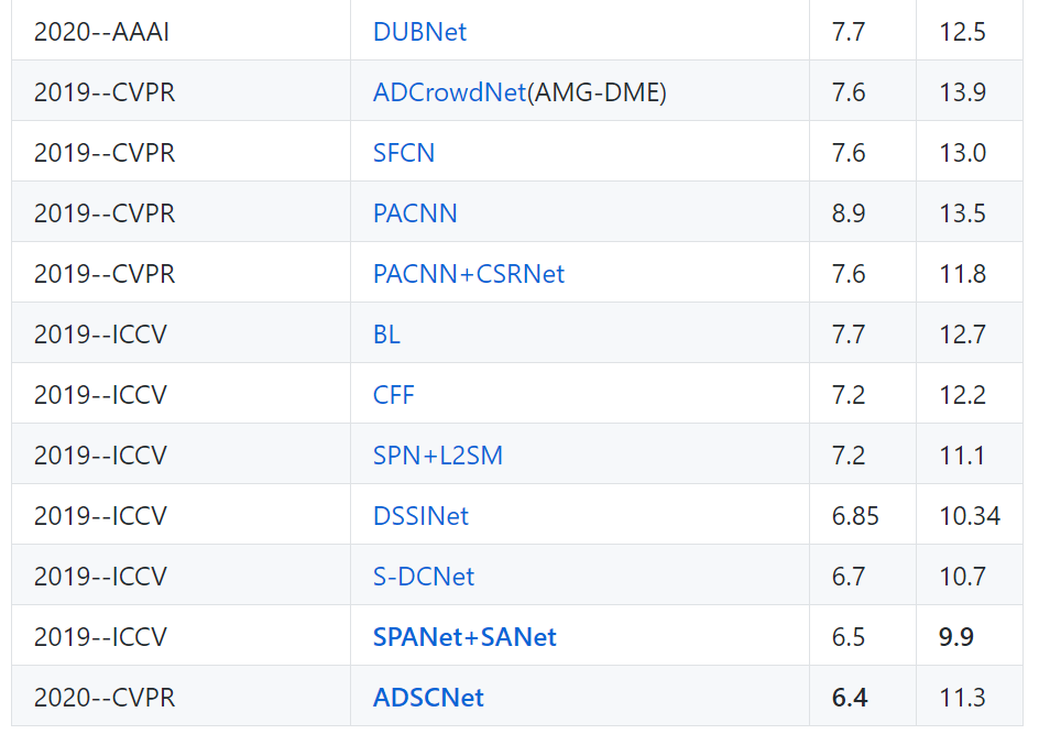 还有在UCF-QNRF、WorldExpo'10 等数据集上的排名,此处省略介绍。