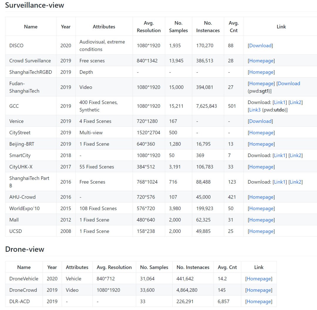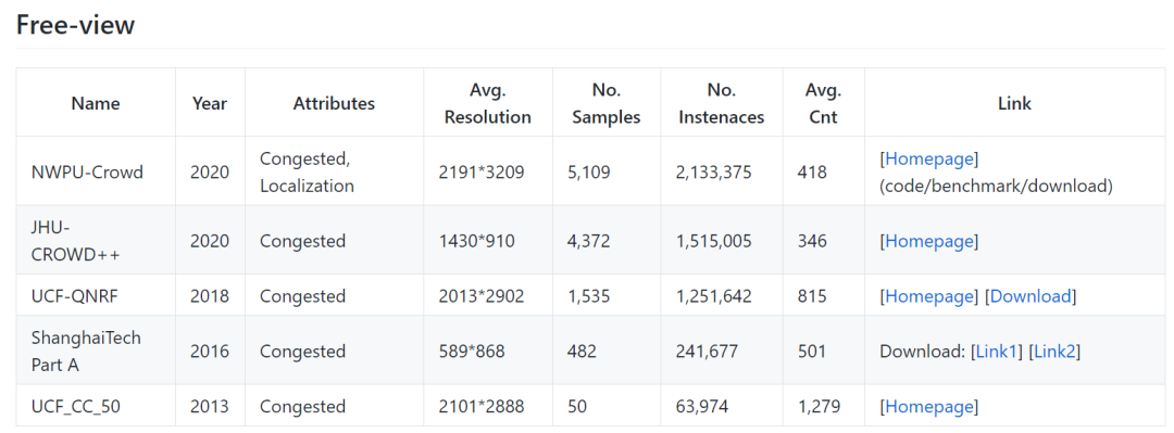 系统整理了非常多的数据集,并都提供了下载链接,整理的很用心。比如NWPU-Crowd、JHU-CROWD++等。