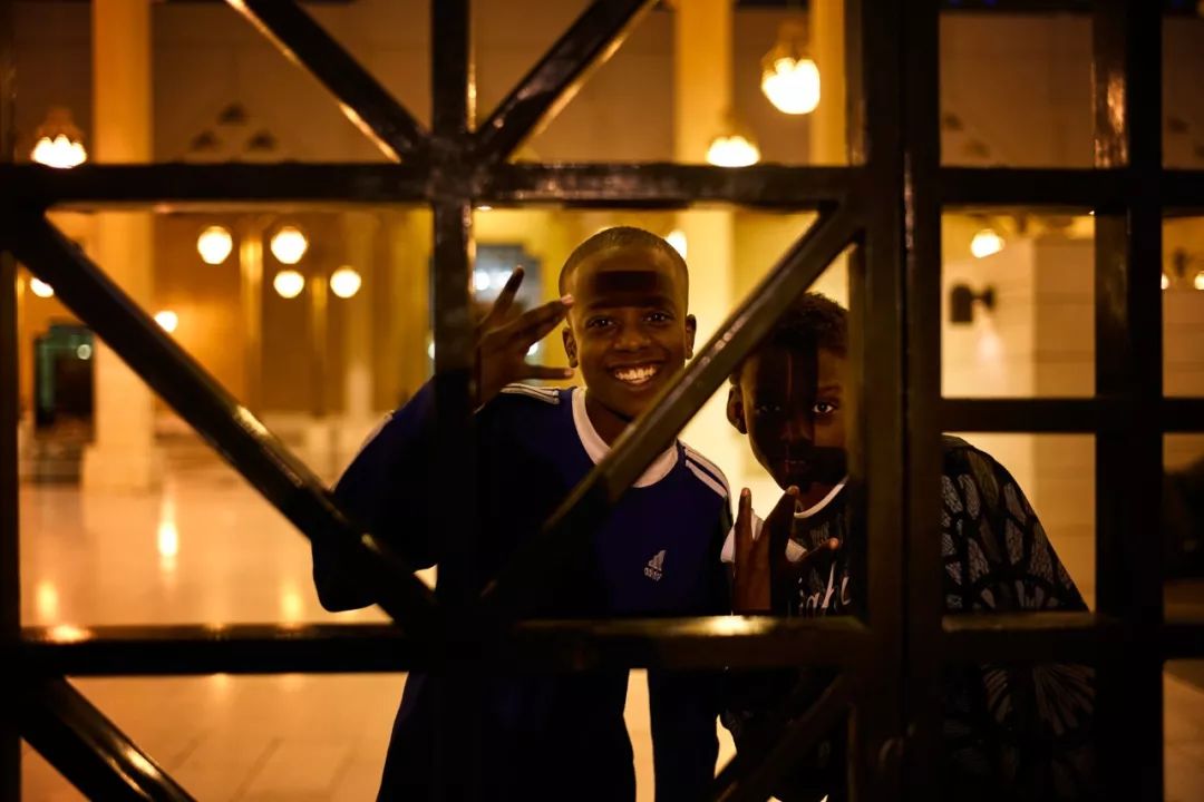 邻近马斯马克要塞的旧司法部大楼如今已被改建成可容纳1.7万人的伊玛目图尔基·本·阿卜杜拉清真寺,两名当地儿童正从清真寺的侧门后方向我们打招呼。