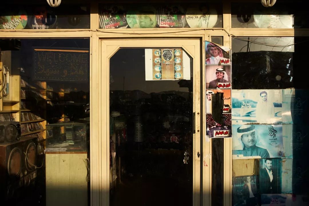 在穿越加瓦尔油田的高速公路附近,一家门庭冷落的CD商店橱窗上张贴着褪色的本地流行乐歌手宣传照。