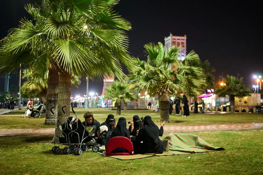 在达曼的一处开放式公园,头戴“尼卡布”面纱、结伴出游的妇女们围坐在棕榈树下。迄今为止,大多数本地妇女在室外环境里依然恪守着严格的性别和家庭界限。