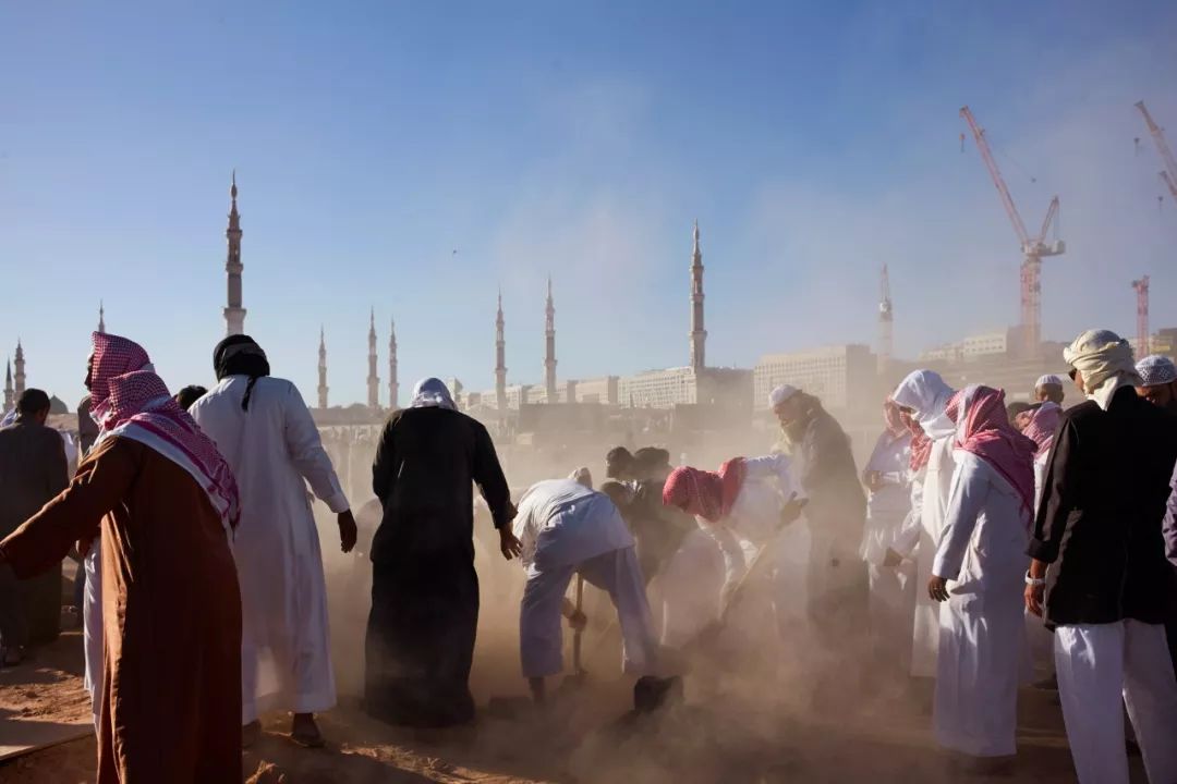 在靠近先知寺的一处家族墓地,一场传统阿拉伯风格的葬礼正在举行。