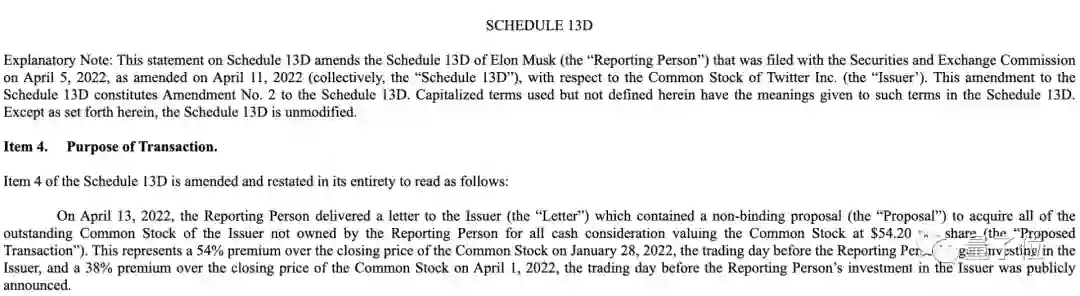 要知道,这一收购价格,比4月1日马斯克正式投资时的股价,高出38%;比他开始投资推特前一天的股价,高出54%。