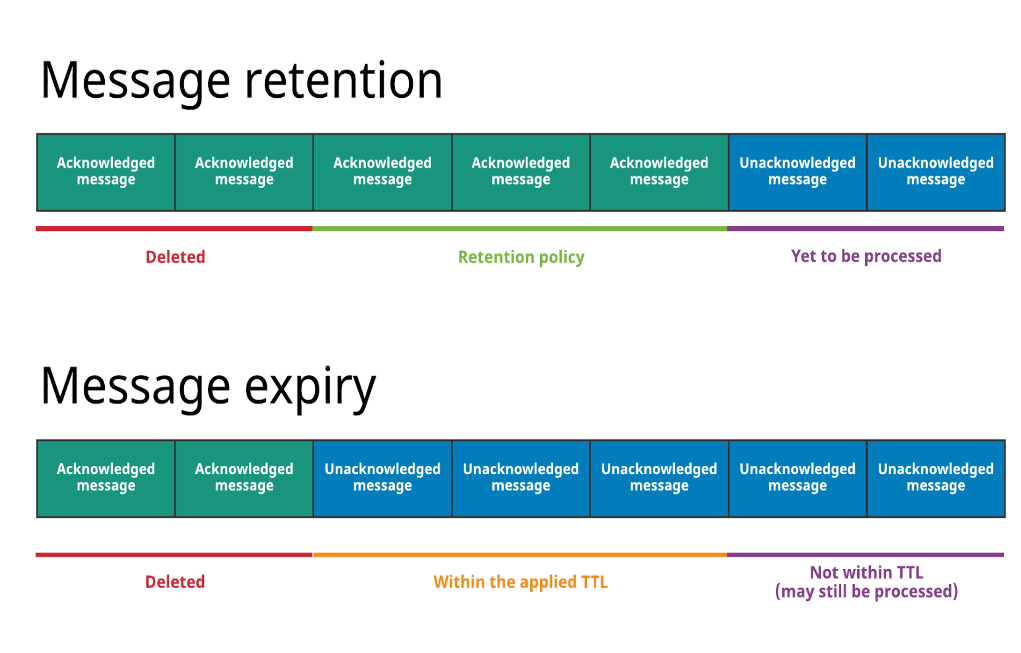 Retention:对已经 Ack 的消息的保留策略,按保留周期和保留大小设置来保留消息