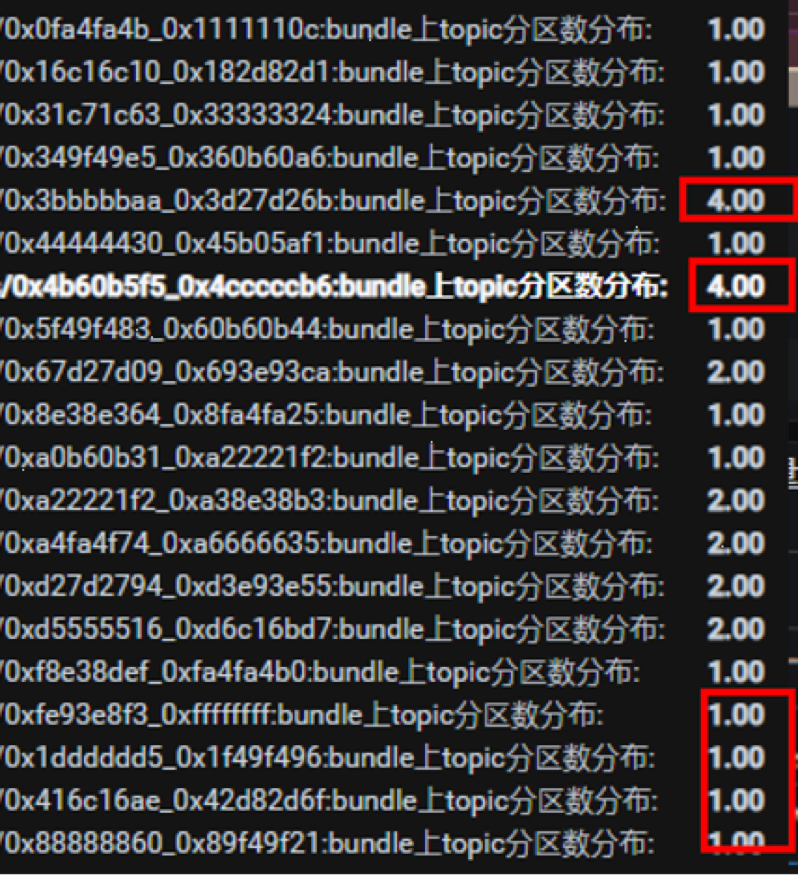 上图可看出,有两个 Bundle 分配了四个分区,远超其他 Bundle。实践中出现以下问题: