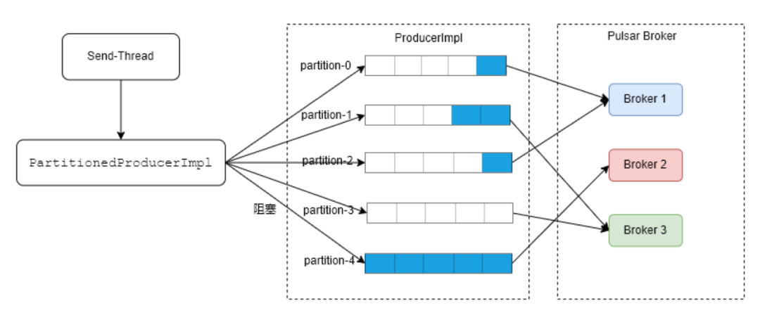 某个分区队列满后会导致发送线程阻塞,影响所有分区的整体发送和集群稳定性: