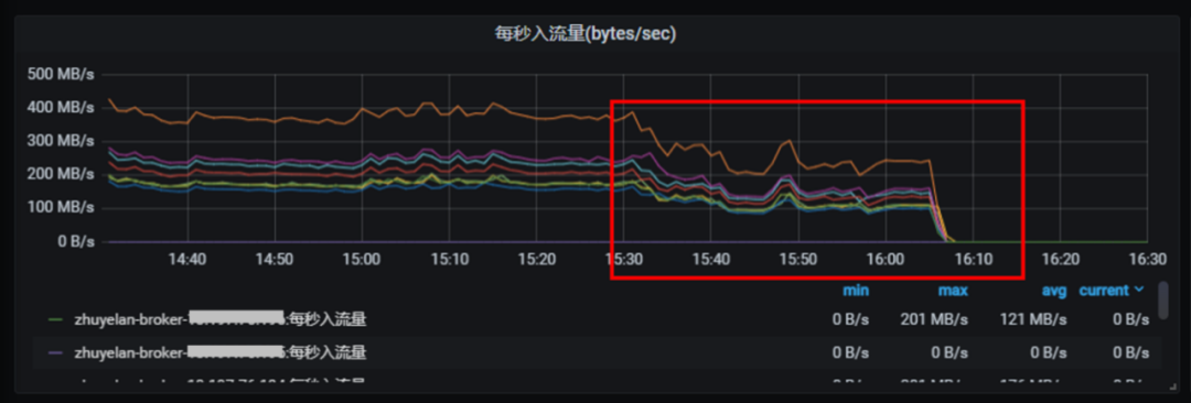 图 21. 执行 Kill-9 一台 Broker 后,其他 Broker 流量下降