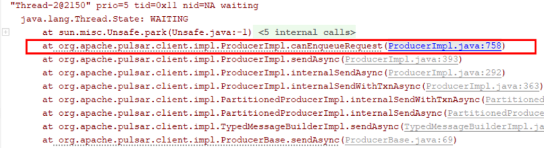 图 22. 第四个分区已满,发送线程阻塞在 canEnqueRequest 上,等待时间长,其他未满分区的发送也被影响。