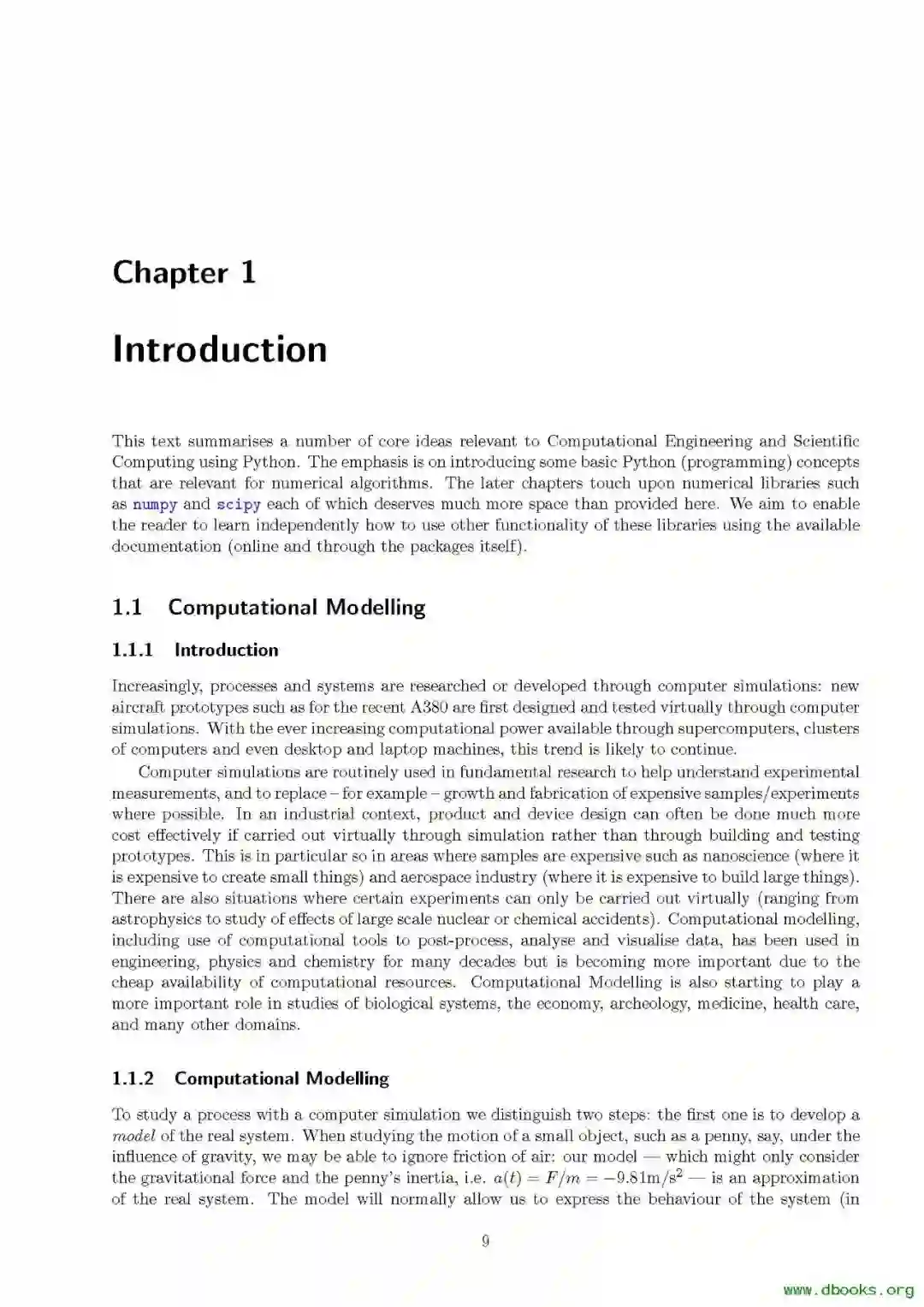 本书总结了使用Python进行计算工程和科学计算的一些核心思想。重点是介绍一些与数值算法相关的基本Python(编程)概念。后面的几章涉及数字库,如numpy和scipy,它们比这里提供的空间要大得多。我们的目标是让读者能够独立学习如何使用可用的文档(在线和通过包本身)使用这些库的其他功能。