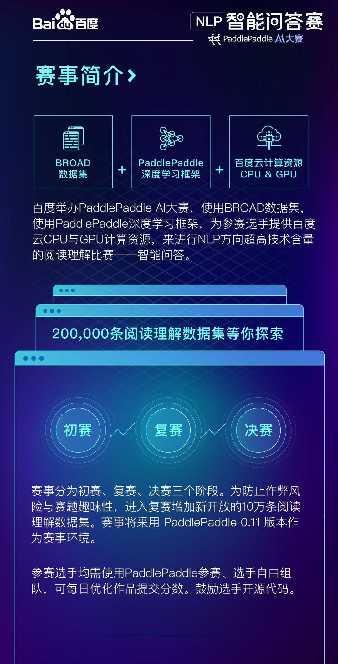 这次上线的NLP智能问答赛事则要挑战人工智能领域里的难题——阅读理解。